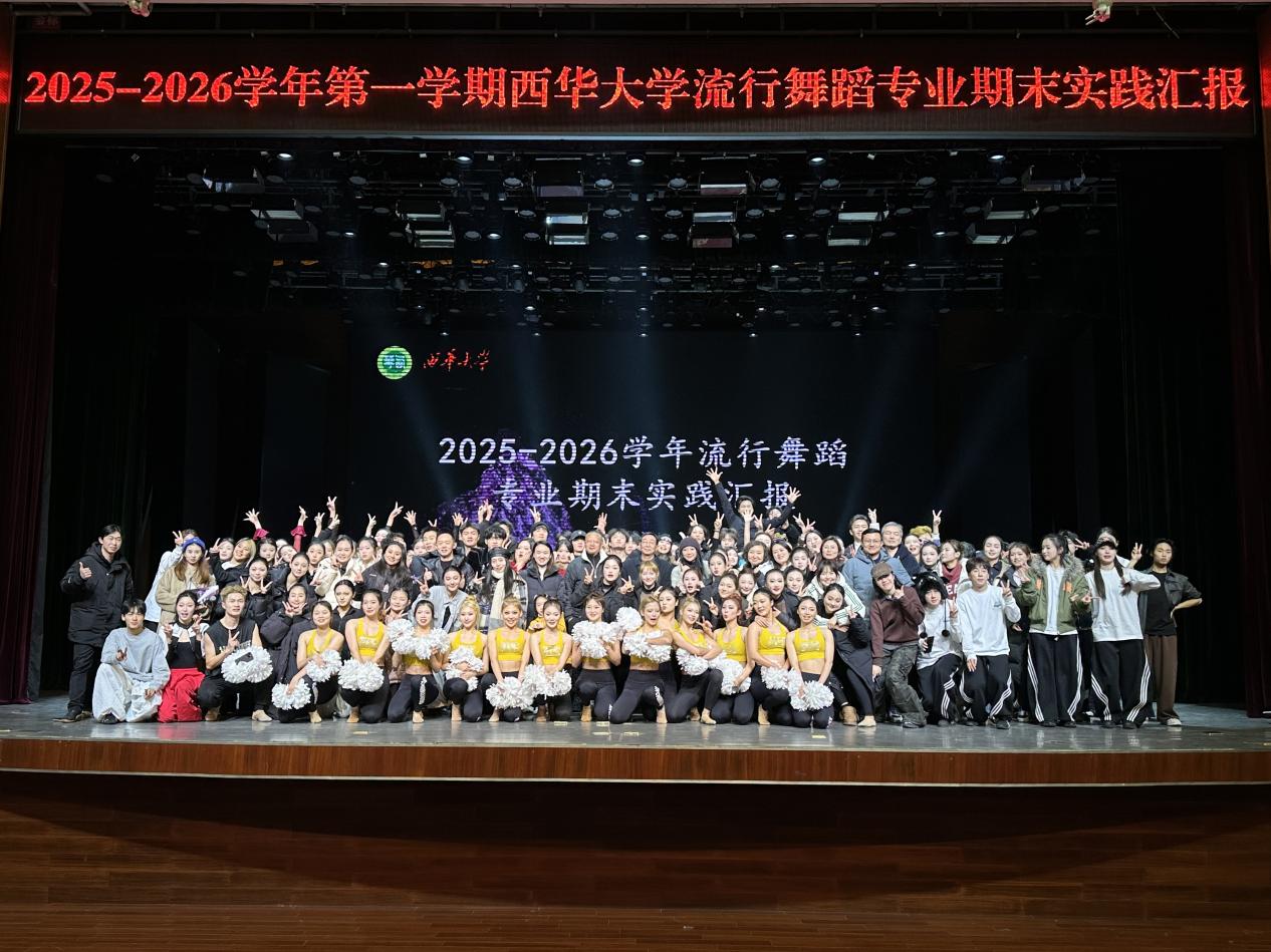 2026年1月6日晚19时,西华大学体育学院流行舞蹈专业在大剧院隆重举办“2025-2026学年第一学期期末实践汇报”。整场演出以“追光逐梦,舞限生长”为主题,汇聚了2023级至2025级流行舞蹈专业学生的精彩表演,展现了学生在舞蹈技巧、编排创意与舞台表现上的全面成长。